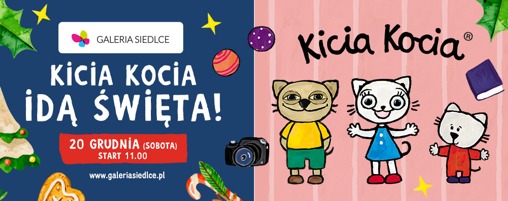 W sobotę 20 grudnia zapraszamy na niezwykłe spotkanie z Kicią Kocią – bohaterką bajek oraz serii książeczek dla najmłodszych. To wyjątkowa okazja, aby odkryć świat przygód z Kicią Kocią i jej przyjacielem Nunusiem, a także wziąć udział w edukacyjnych zabawach i świątecznych przygotowaniach do Świąt.